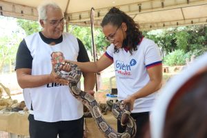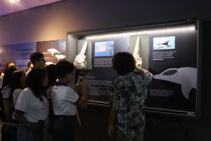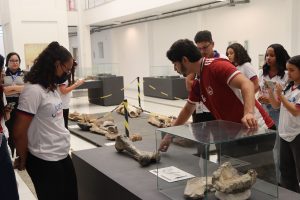 Durante o percurso, os aprendizes passaram por diversas áreas do Museu Câmara Cascudo. No Espaço da Ciência, participaram de falas e explicações sobre animais e suas relações com o espaço científico e tiveram a oportunidade de manusear uma cobra de forma segura. Em seguida, conheceram a sala Navegações e Povos Indígenas, onde aprenderam sobre embarcações tradicionais e culturas originárias. Também exploraram as salas de Anatomia Comparada e Paleontologia, dialogando sobre anatomia dos animais e fósseis que ajudam a contar a história da vida no planeta.